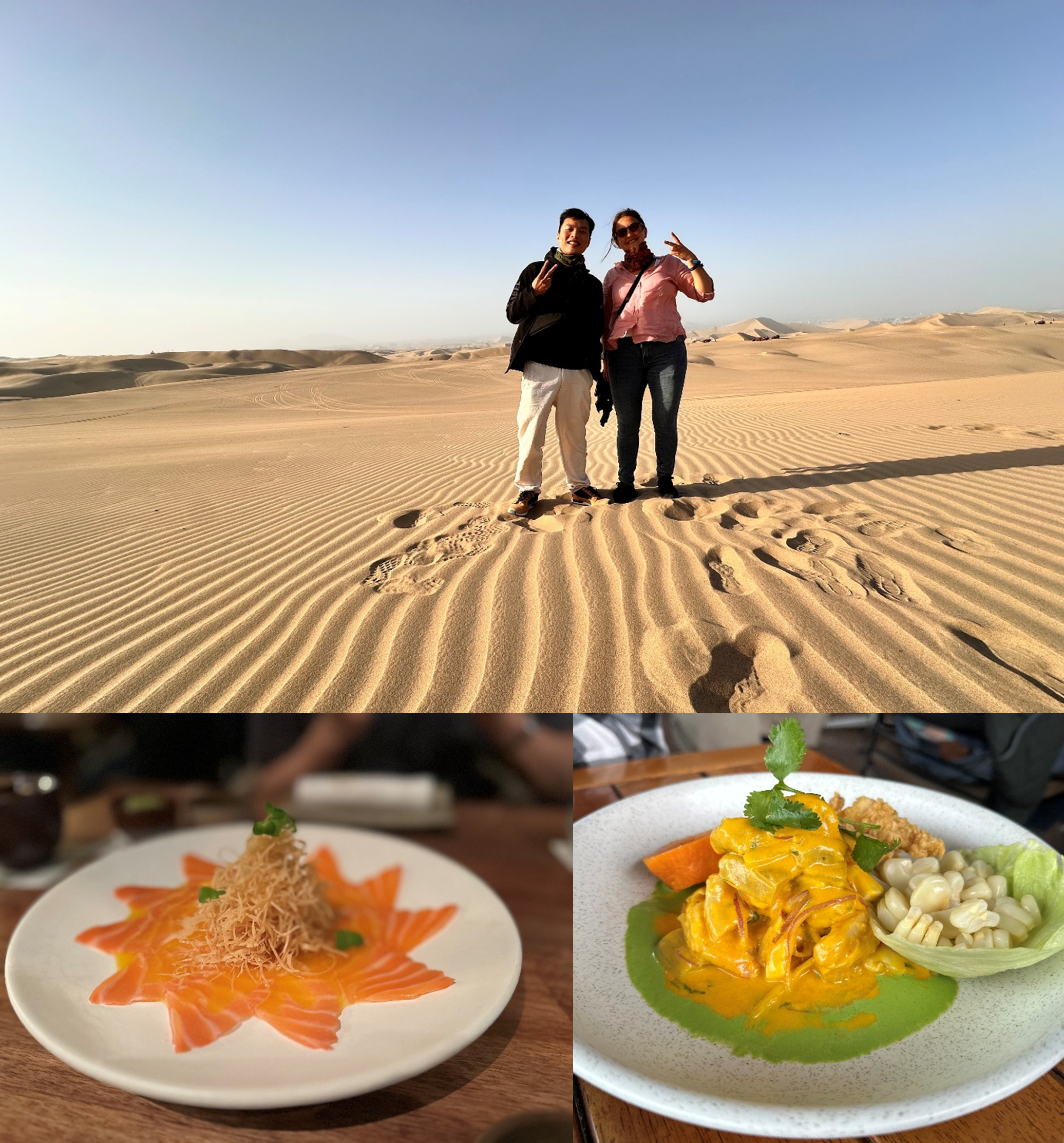 The top picture is from the trip to the desert around Huacachina oasis, and the bottom pictures show some of the delicious food we had in Lima.